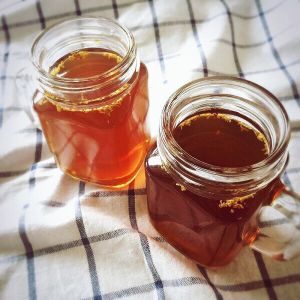 关火,根据个人口味加入冰糖,冷却后加桂花糖浆并放冰箱冷藏,随时都可以喝啦。