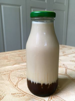 待咖啡冻成冰块以后,倒入糖浆和牛奶,混合均匀就OK啦。