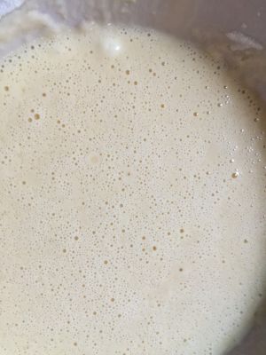 在碗中打一个鸡蛋,加入红薯淀粉和面粉小苏打调成糊,红薯淀粉和面粉的比例是1:2,小苏打加了一小勺尖,再加入少许盐,浓度以能让鱼挂住浆为好。