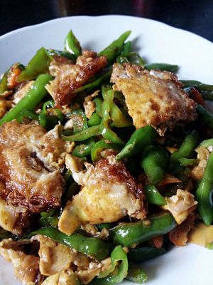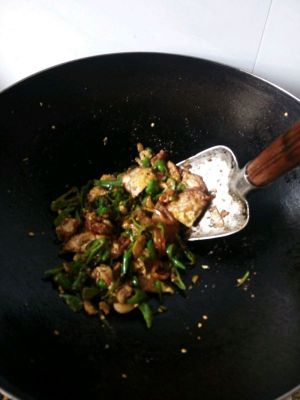 锅里放好油,大蒜爆香,把辣椒,生姜放下炒,放生抽,蚝油,盐,再把蛋放下去一起炒,最后再放点鸡精
