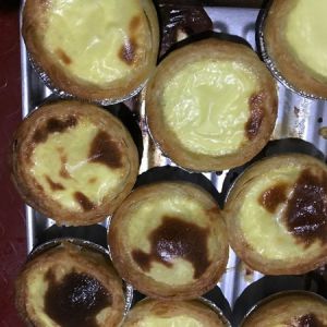 嗯,前面的都忘记拍照了,嘿嘿,反正就是牛奶,加鸡蛋,在加低筋粉搅拌在一起咯,然后倒在蛋挞皮里面放烤箱烤25分钟就好了,哈