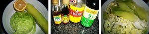 先撒一些盐在圆白菜上,腌几分钟让菜出出水份,