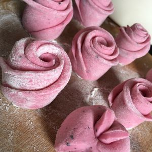 奇怪的是我做出来的粉色玫瑰花,蒸出来就是一朵白色带点的玫瑰花。蒸完为了蒸下一锅,由于蒸汽原因,盖子揭早了,成品直接收缩了,表面看上去有点皱皱的!
