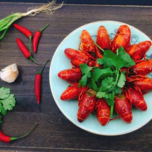 用剪刀在小龙虾的眼睛后处剪去沙囊,留下虾黄可以放心享用