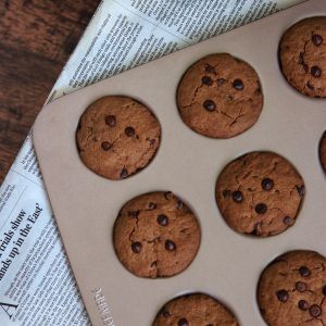 按压在模具里,将留下的巧克力豆分别放在饼干上面压一下