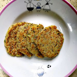 土豆削皮洗净,分解细块后放料理机内打碎,这一步我忘记拍照了加入藜麦,葱花,盐拌匀。