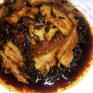 第三步: 处理梅干菜 我是在某宝买的梅干菜 没有提前泡。就是用的时候拿出来多清洗几遍 然后挤干水份 备用。因为梅干菜有很多泥沙 一定要多洗几遍