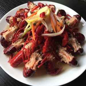 小龙虾洗净蒸熟,上面撒上黄酒,放几片姜和葱段