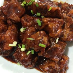 把炸好的里脊在炸一变,炸好之后捞出,油烧热加少许水糖醋在加入生粉勾芡,把炸好的里脊加入搅拌。就OK啦。