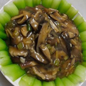 锅入适量油,油热爆香花椒,葱花,姜丝,蒜末,倒入香菇翻炒片刻,加入蚝油,生抽和一点点糖,加点水煮一下,尝一下汤汁的咸淡,(可以适量加一点点盐)倒入准备好的水淀粉翻炒均匀,汤汁浓稠即可盛出(因为香菇绰过水,所以不用煮很久)