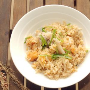 打开盖子,用饭勺上下翻动,将米饭与所有的食材混合在一起,即可装碗开吃。