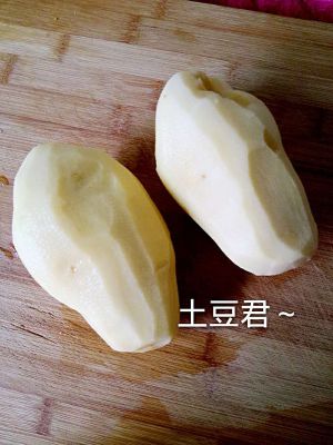 切成0.7左右厘米的长条(宽度自己把握 不要太粗就好)洗净表面的淀粉 再用干净的水没过土豆条 浸泡10分钟