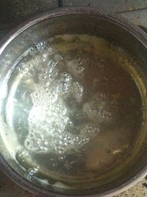 锅边起晶了就用沾水后的毛刷沿着起晶边刷洗,这时起晶点会随着毛刷上的水滴滑落到锅内