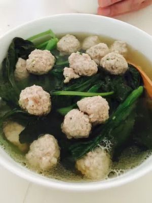 因为晚饭做的太着急,所以搅拌地时间短了,搅拌肉馅时,顺时针搅拌到感觉搅不动。那样做出来的丸子更有口感