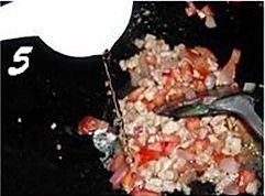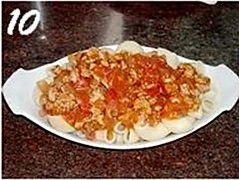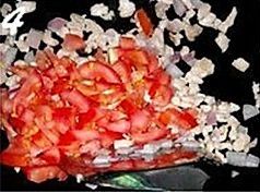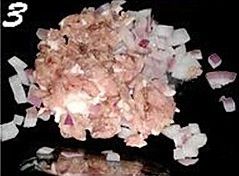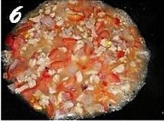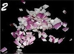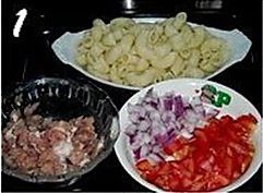 通心粉用水泡软,瘦肉,洋葱,番茄分别切小丁;