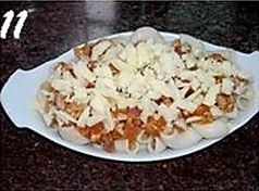 放进烤箱上层,不要预热,开200度,焗至奶酪融化至表面金黄即可。