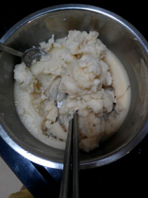 蒸好后,用筷子使劲搅拌均匀光滑。