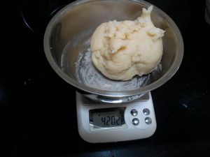 做好的冰皮,有420g重,50g一个月饼,每份皮15~17g,可以做25个月饼。