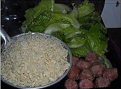 生菜清洗干净,牛肉丸放在水龙头下冲洗一次;