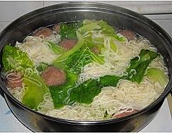 煮至生菜断生,放盐、放一小勺鸡精调味即可。