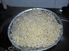 水开后,用筷子划散面条,捞起,泡进冷水里过冷河;