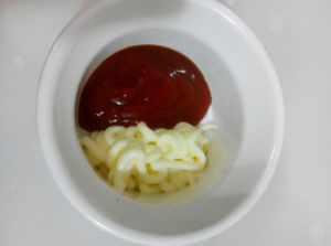 沙拉酱番茄酱搅拌均匀,享受美味吧