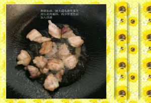 炒至七八分输后加水,撇去油花,将水没过肉肉