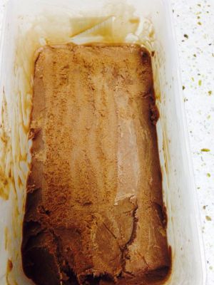 放入冰箱冷冻一夜,冻硬。(吃到一半才想起来拍照)