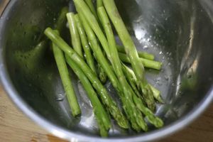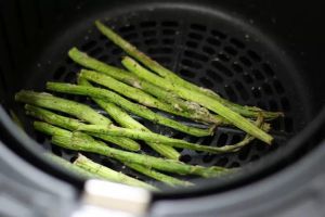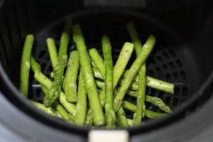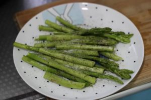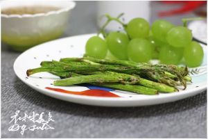 将腌制好的芦笋放入烤篮,200度烤10分钟,中间可不必拉出烤篮再次摇匀,因为量原本不大