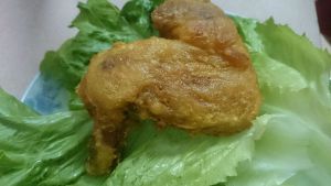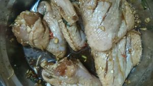 最后是常规炸法,鸡翅滤干水分翻上一层糊状炸粉中,大火至油热转小火,放入鸡翅炸至金黄色即可