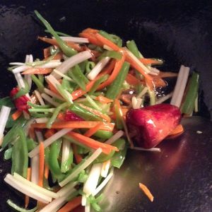 出锅前把炒过的青菜放里