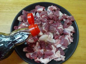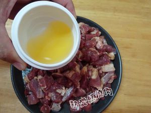 首先将羊肉切成大小差不多的块然后加入一个鸡蛋清抓匀。