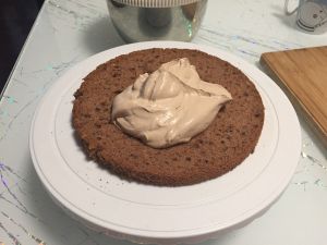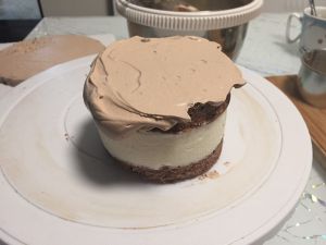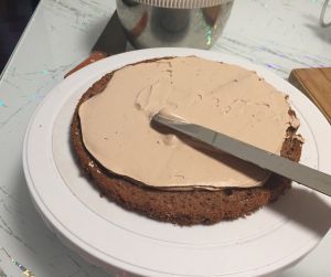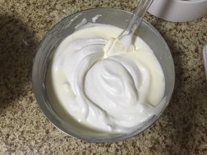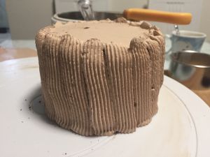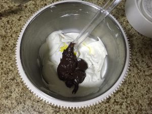 巧克力奶油:70g淡奶油融化,加入切碎的黑巧克力拌匀成巧克力酱,然后与打发好的淡奶油拌匀。