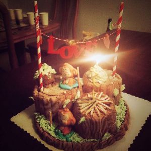 最后我又做了点装饰,比如加了点蓝色的作为水⋯⋯插上pocky做金箍棒和火柴堆。