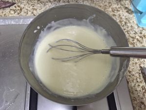 下面我们来做冻芝士慕斯:奶油奶酪隔水软化,加入酸奶,细砂糖,柠檬汁搅拌顺滑。