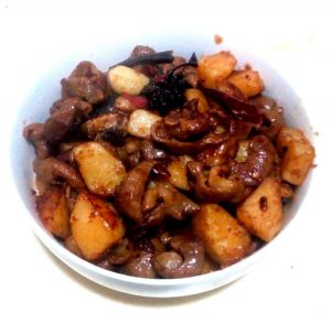 放料酒、生抽、老抽,少量盐,倒清水,中大火煮。盖上锅盖。中途翻一下。待水快干时尝一下,熟了关火