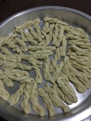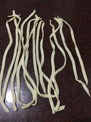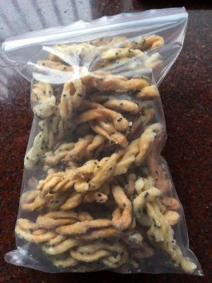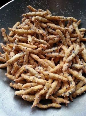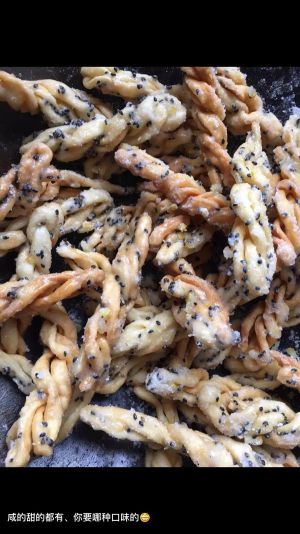 将白糖和水放锅里煮熟后加点黑芝麻、将炸好的面放进去一起搅拌均匀后关火