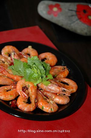 炸好的虾和小葱,撒适量椒盐粉翻匀,马上起锅装盘