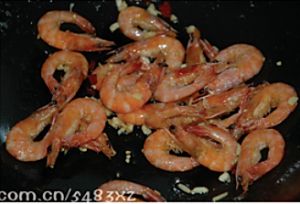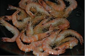 锅里放油,油热后下大虾炸至虾酥,起锅沥油