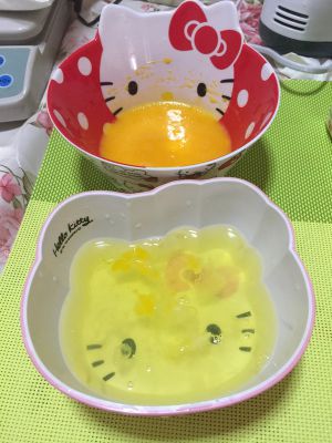 蛋黄蛋清分离。蛋黄打散~