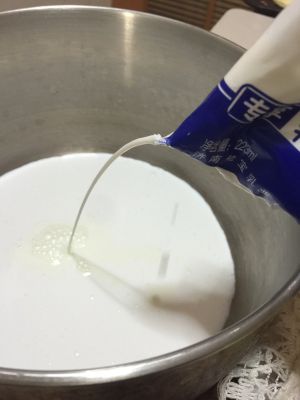 奶凉后倒入蛋黄~
