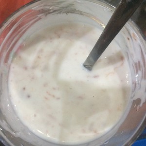 再加入纯牛奶,搅拌匀就可以了。酸奶我试过卡士和燕塘的,本人觉得卡士的做出来口感好点。纯奶是在吉之岛买的进口牛奶。