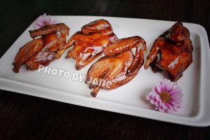 乳鸽捞出,剩下的汁煮稠,淋在乳鸽上。如果乳鸽捞出时,汁已够味,便勾芡将汁变稠