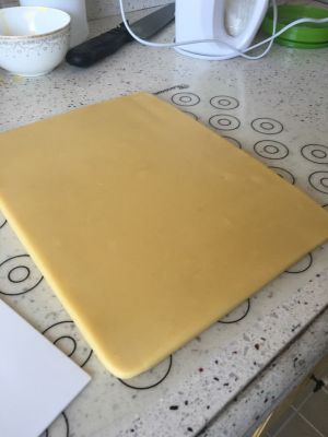 用擀面杖擀平整,放入冰箱冷冻三十分钟。
