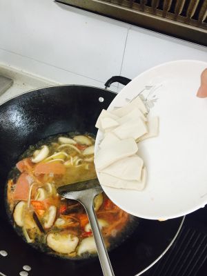水烧开,两分钟,放入豆腐,