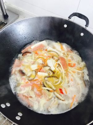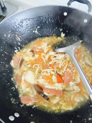放入调好的淀粉,水烧开,就可以出锅了。