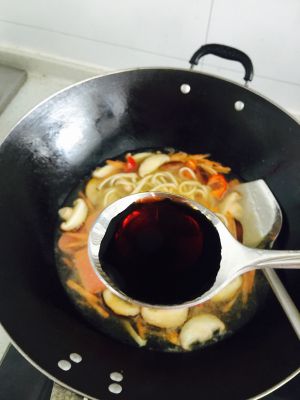 炒一会,放入淘米水,这会放入生抽,盐。