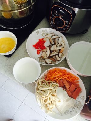 鸡蛋打好,淀粉也加水调好,来个全家福,对了,我里面放的水是淘米水,当然水也可以。