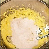 黄油室温软化后,倒入糖粉、细砂糖,拌匀。