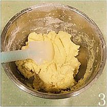 在黄油糊里倒入香草精,并搅拌均匀。低筋面粉筛入黄油糊,用橡皮刮刀把面粉和黄油糊拌匀。